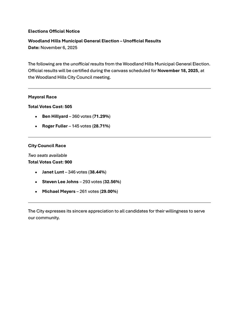 2025 Municipal Elections Unofficial Results